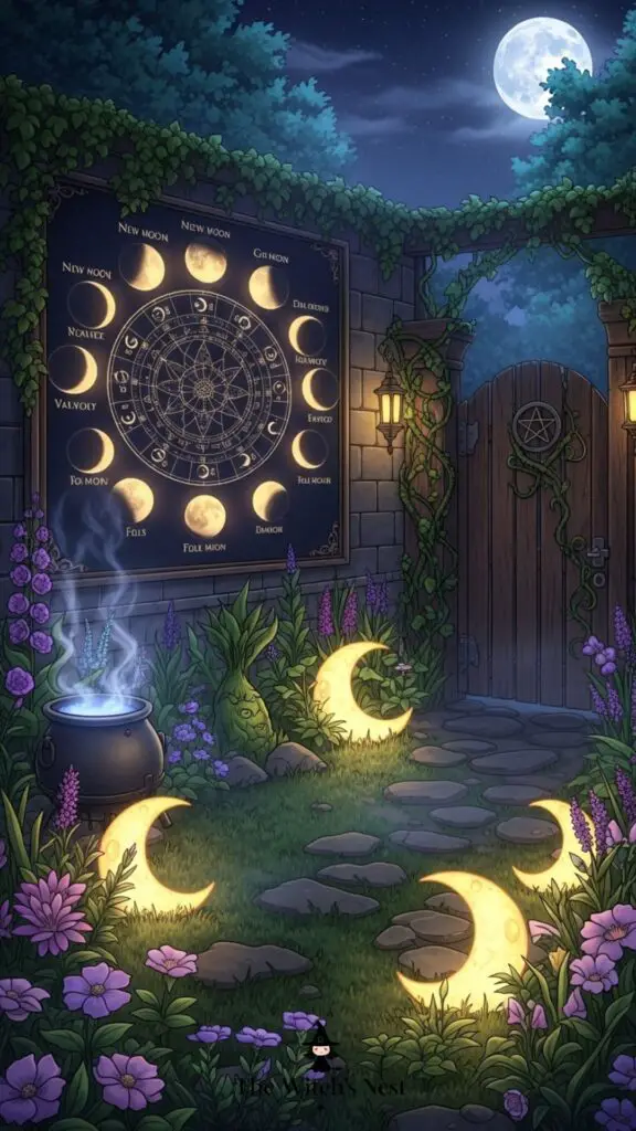 The moon plays a vital role in witchcraft and gardening. Planting, watering, and harvesting according to the moon phases can make your garden thrive with magical alignment. You can also add moon phase decorations, like stepping stones, wind chimes, or wall art, to remind you of lunar cycles as you tend your plants.