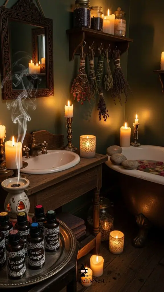 Candles are essential for creating a mystical atmosphere. Choose white for purity, black for protection, and pink for self-love. Place them around your bathtub or sink to transform everyday self-care into a ritual of renewal.