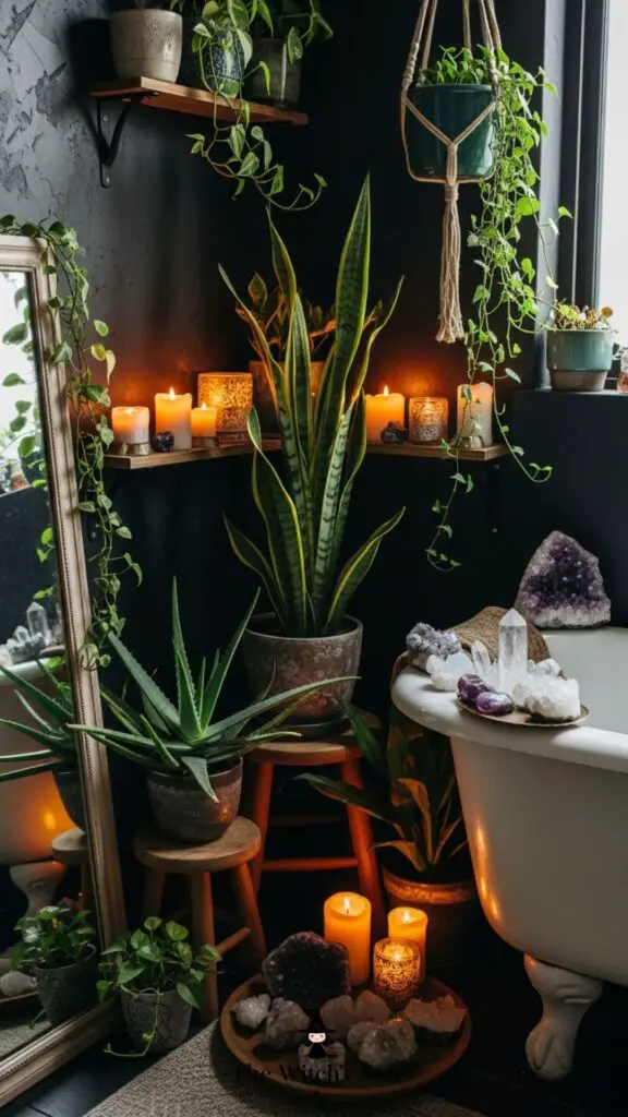 Plants add both beauty and spiritual energy. Snake plants protect against negativity, aloe vera heals, and ivy attracts abundance. Choose greenery that resonates with your magical intentions.