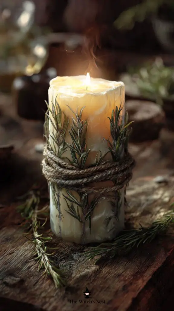 Wrap herbs like rosemary or sage around a pillar candle (safely, with twine) to infuse natural energy into your decor.