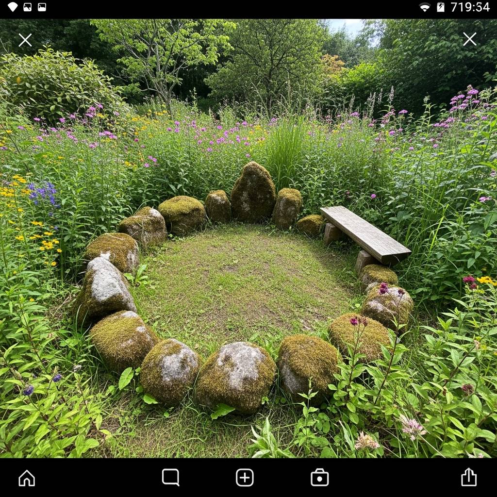 Fairy rings aren't just for folklore; you can create your own! A sacred circle or fairy ring offers a designated area for grounding, meditation, or small gatherings. You can define this space with a ring of stones, carefully placed logs, or even by planting a circular bed of specific flowers or herbs. Consider creating a seating area within the circle using natural elements like tree stumps or rustic benches. This circular design naturally invites a sense of wholeness and enclosure, making it an ideal spot to feel connected to the earth and the energies around you. Imagine sipping herbal tea here, surrounded by your green sanctuary.