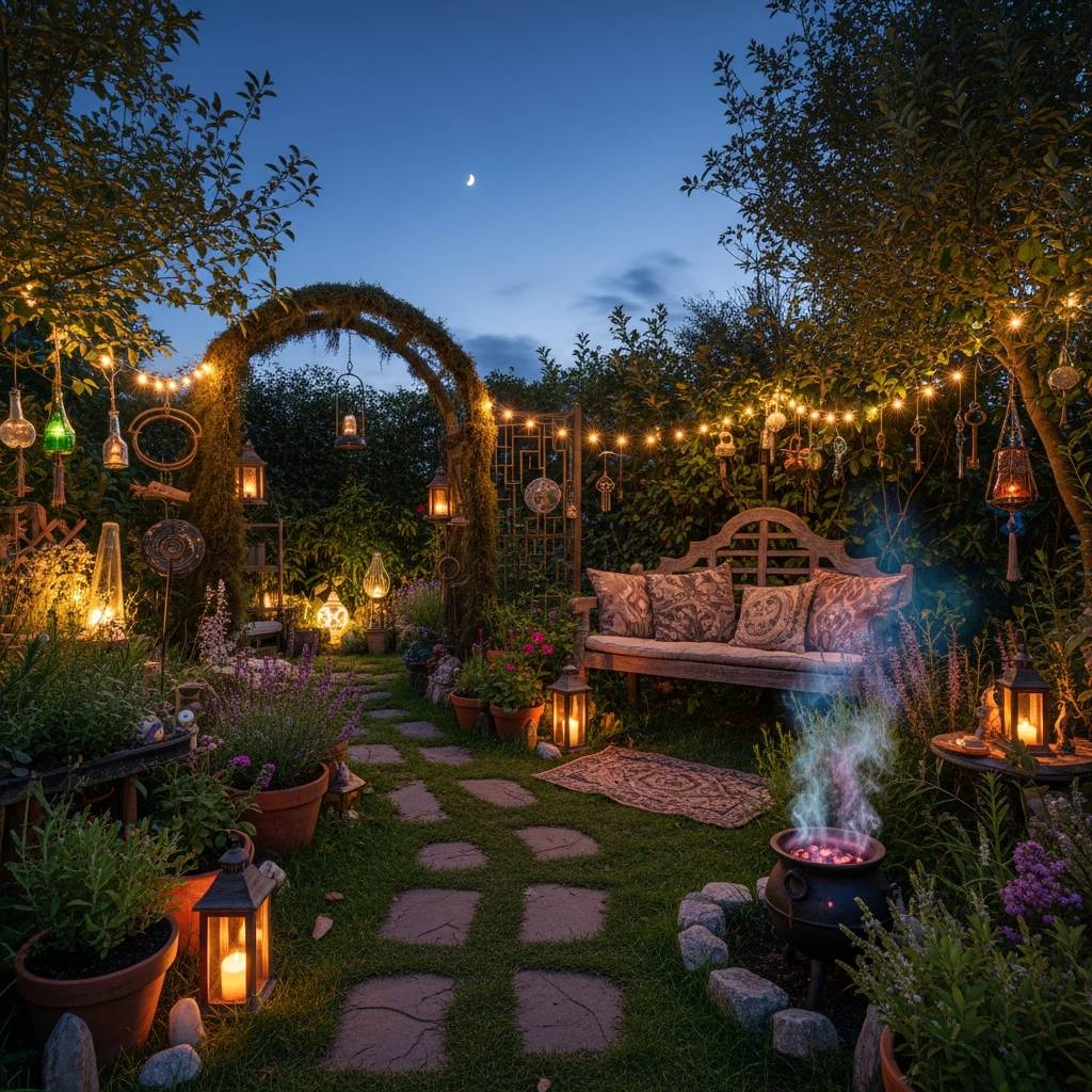 As dusk falls, your witchy garden can transform into an even more magical realm with the right lighting. Solar-powered fairy lights draped through tree branches, strung along fences, or nestled within bushes create a soft, twinkling glow that's utterly enchanting. Add rustic lanterns, both hanging and freestanding, to cast warm pools of light on paths or seating areas. For a truly primal touch, a safely contained fire pit can provide warmth, light, and a mesmerizing focal point for evening rituals or simply cozy gatherings. The interplay of light and shadow will make your garden feel like a secret, illuminated sanctuary after dark.