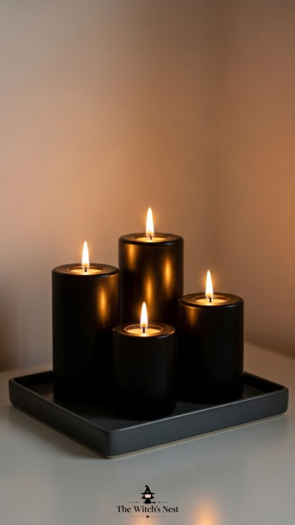 Candles bring warmth and magic into any space. Choose deep colors like black, burgundy, and forest green, or carve runes into candles for intention.