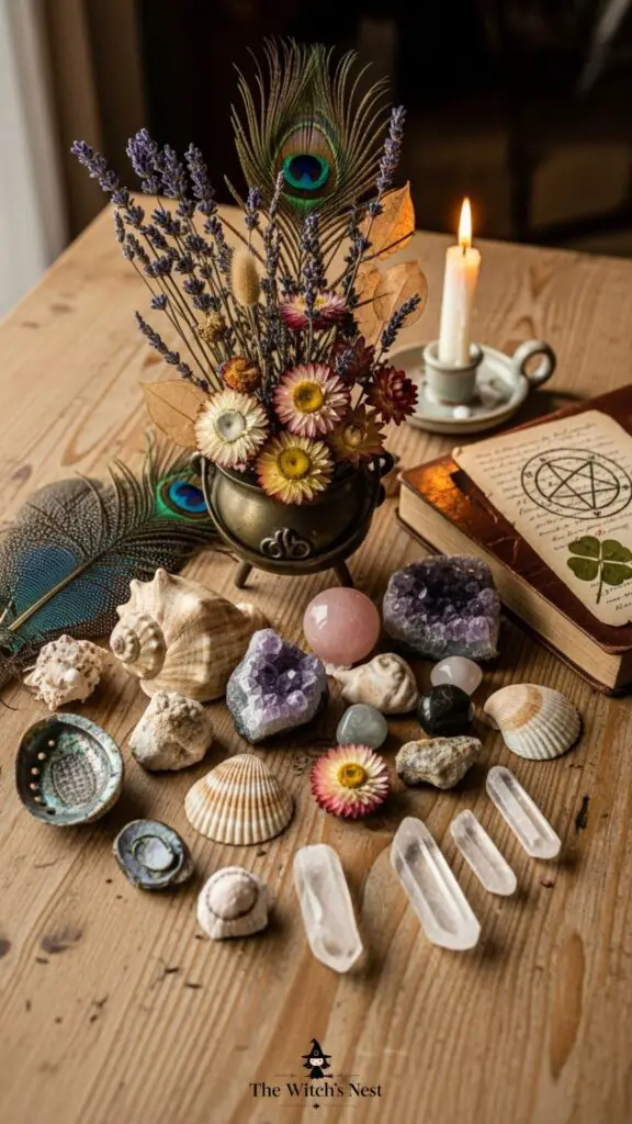 Bring in stones, seashells, feathers, or dried flowers to connect your home with the natural world. These small touches add beauty and magical intention.