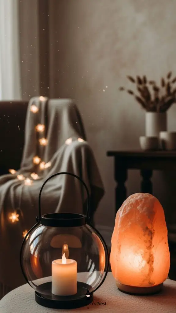 Use fairy lights, lanterns, or salt lamps to create a warm glow. Avoid harsh lighting — instead, aim for a soft, mystical ambiance.